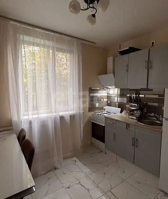 Квартира с косметическим ремонтом, окна во двор, санузел совмещённый.