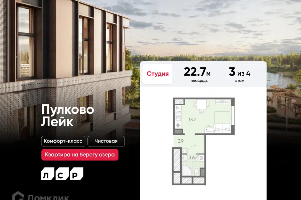 Студия, 22.7 м², 3/4 этаж