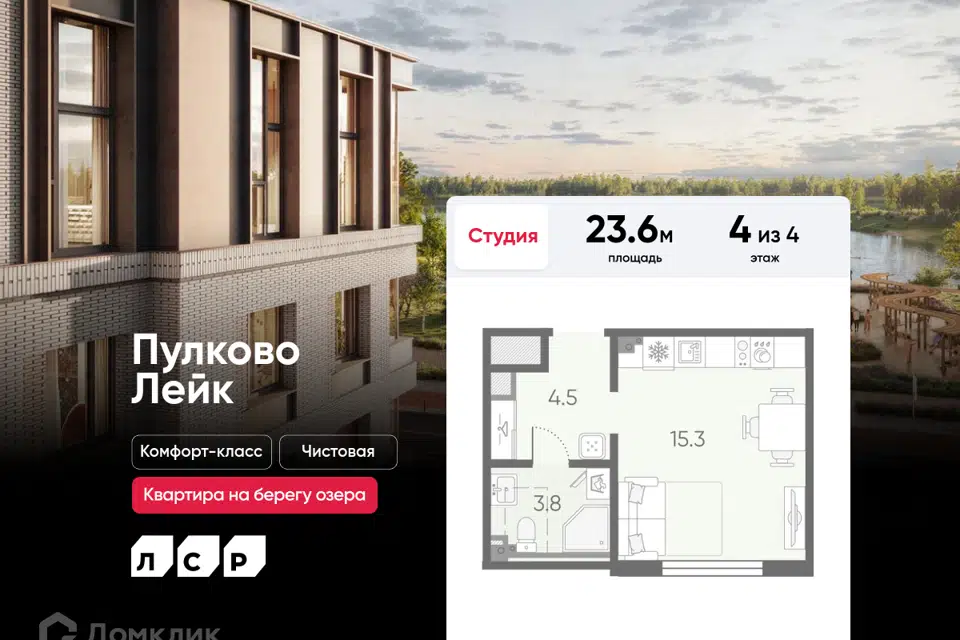 Студия, 23.6 м², 4/4 этаж