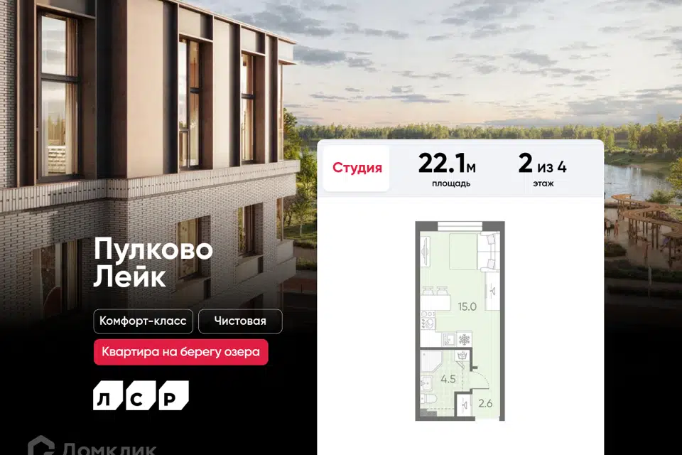 Студия, 22.2 м², 2/4 этаж