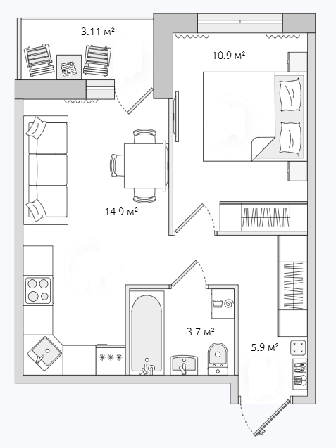 Общая площадь составляет 37,5 кв.м., включая просторную кухню 12кв.м. и изолированную комнату 16 кв.м., что позволяет комфортно разместить мебель и зонировать пространство. Из кухни выход на застекленную лоджию, остекление увеличивает полезную площадь и делает ее пригодной для использования в любое время года.