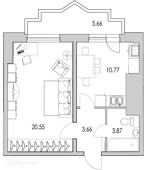 1-комн. кв., 30.9 м², 6/9 этаж