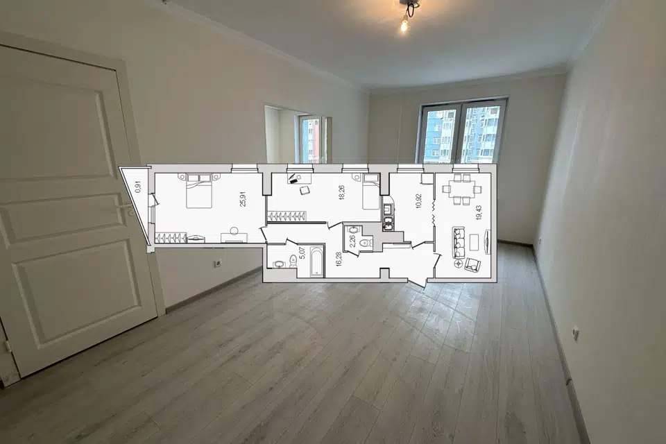 3-комн. кв., 94.1 м², 7/25 этаж