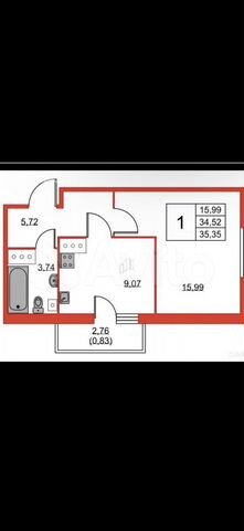 1-комн. кв., 35.7 м², 8/23 этаж