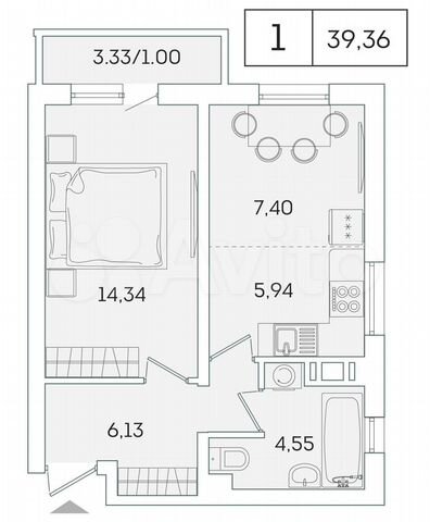 1-комн. кв., 33.35 м², 12/16 этаж
