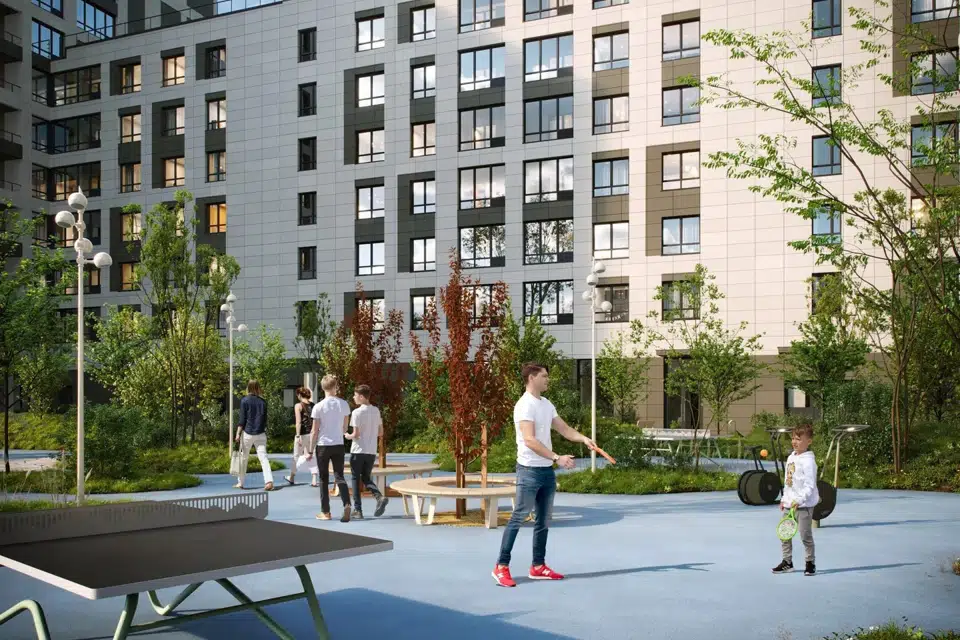На территории комплекса расположены всё необходимое для комфортной жизни: детские и спортивные площадки, благоустроенная зона отдыха и прогулочный парк, подземный паркинг. Территория огорожена, охраняется 24/7, установлена система видеонаблюдения.