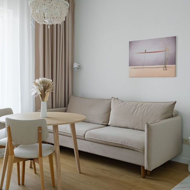 Апартаменты с дизайнерским ремонтом, где каждая деталь продумана до мелочей. Совмещенный санузел выполнен в современном стиле и оборудован всей необходимой сантехникой. Планировка студии позволяет рационально использовать пространство.