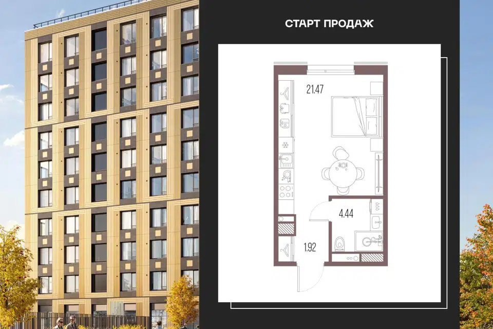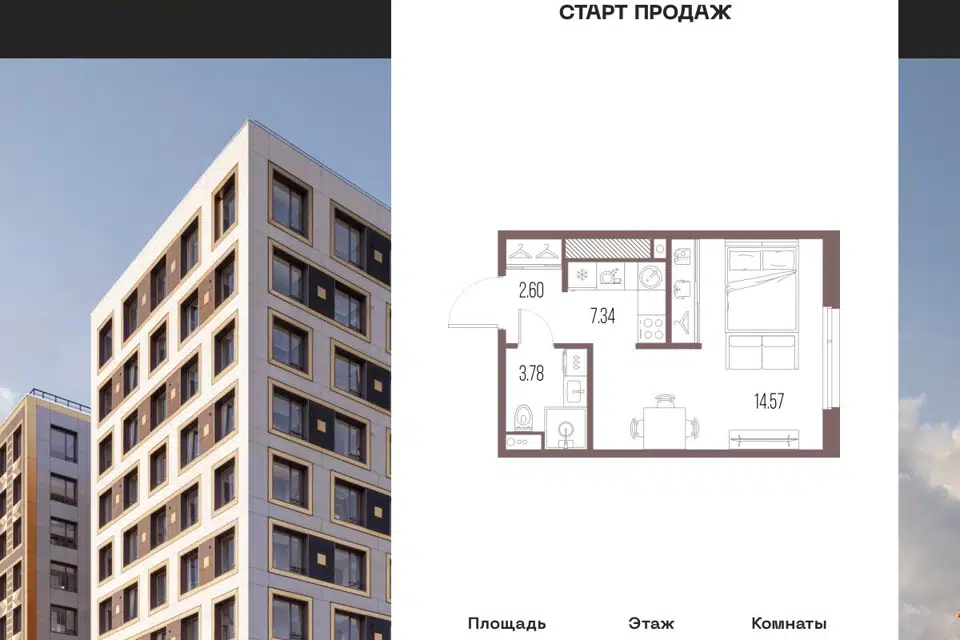 Студия, 25.2 м², 12/12 этаж