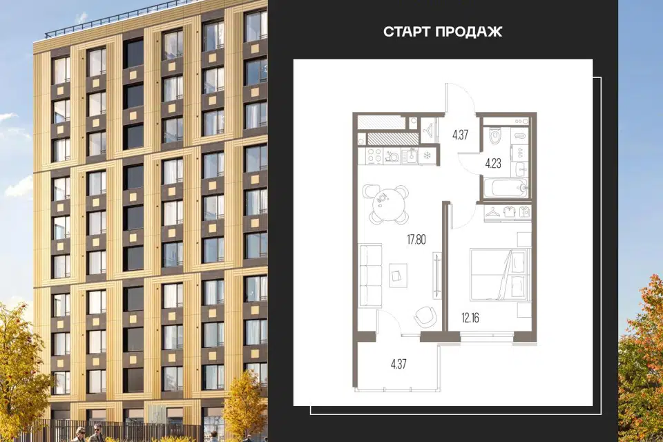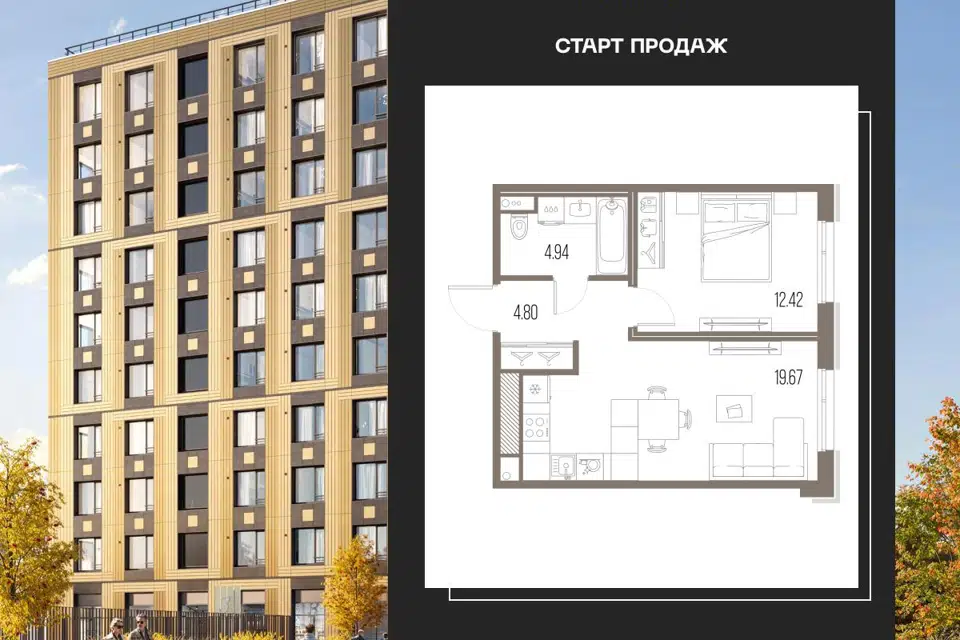 1-комн. кв., 41.83 м², 10/10 этаж
