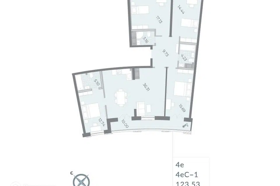 4-комн. кв., 123.9 м², 16/16 этаж