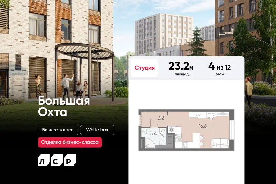 Студия, 23.2 м², 4/12 этаж