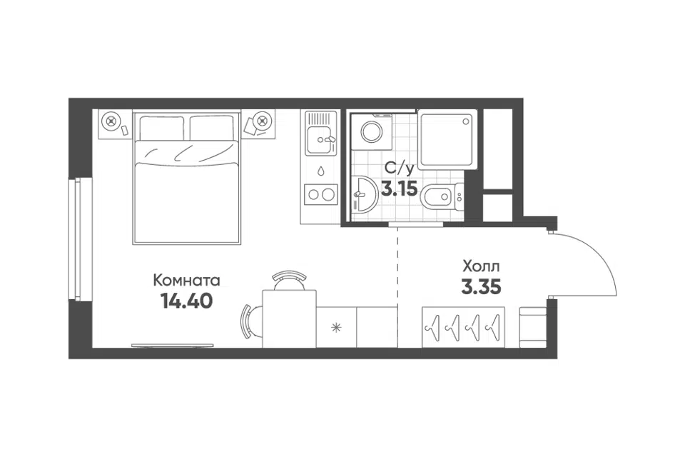 Студия, 21 м², 15/18 этаж