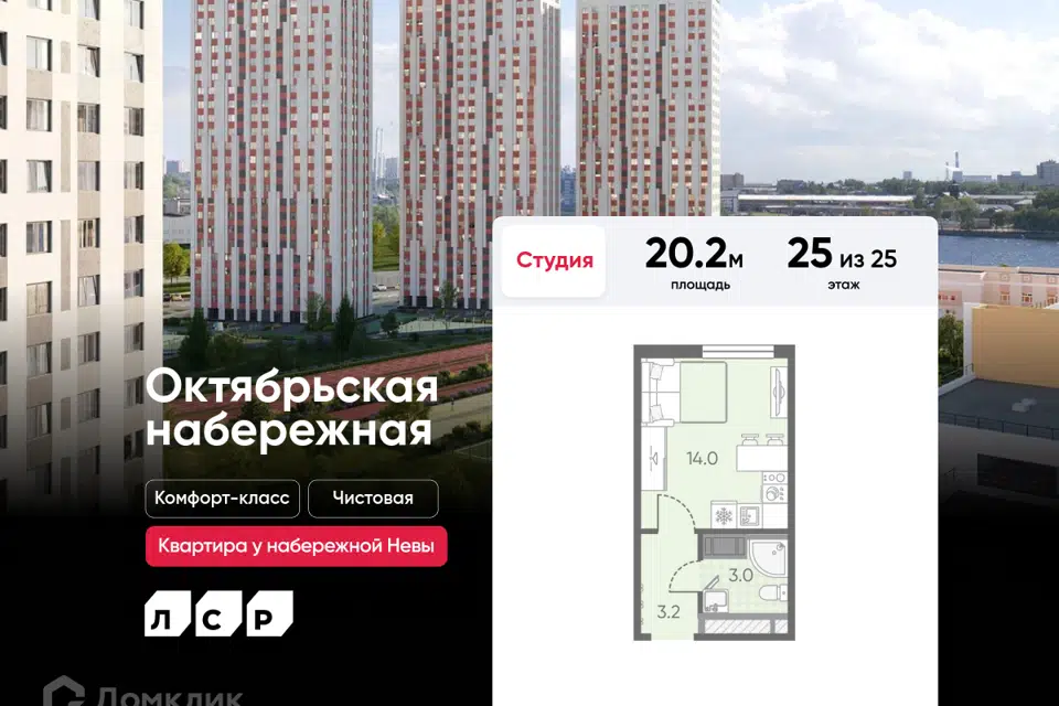 Студия, 20.2 м², 23/25 этаж