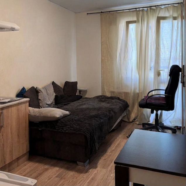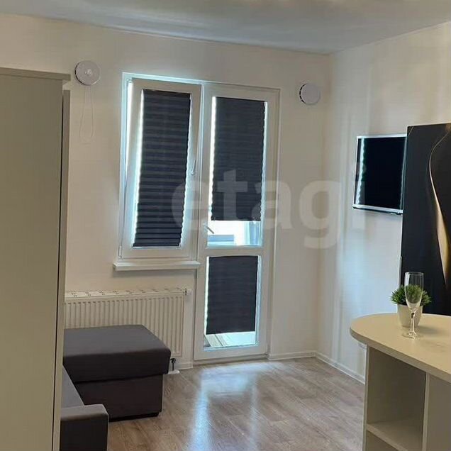 Квартира площадью 20.9 кв. м расположена на 22 этаже 24-этажного кирпично-монолитного дома, построенного в 2019 году. Светлая отделка в нейтральных тонах создает ощущение простора, а окна, выходящие на солнечную сторону и во двор, обеспечивают хорошее естественное освещение. В квартире остается качественная плитка, а застекленный балкон добавляет полезного пространства.