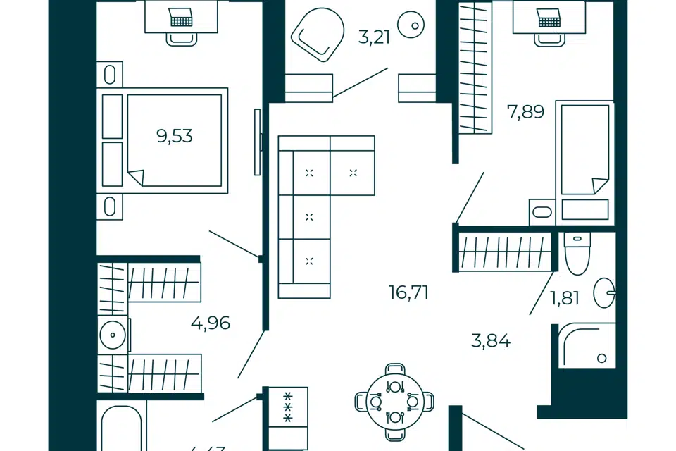 2-комн. кв., 50.6 м², 7/9 этаж