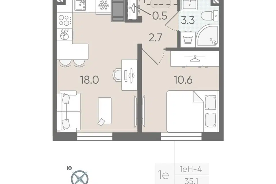 1-комн. кв., 35.1 м², 9/22 этаж