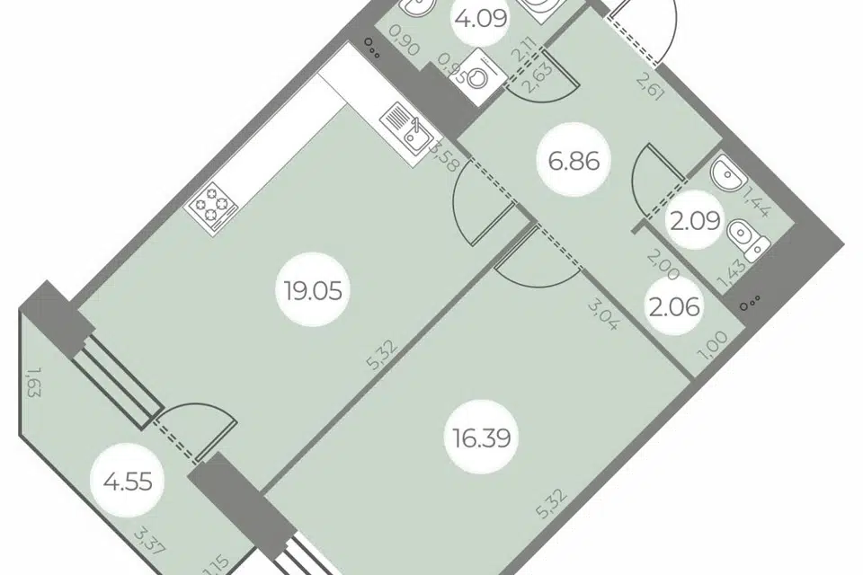 2-комн. кв., 68.7 м², 3/19 этаж