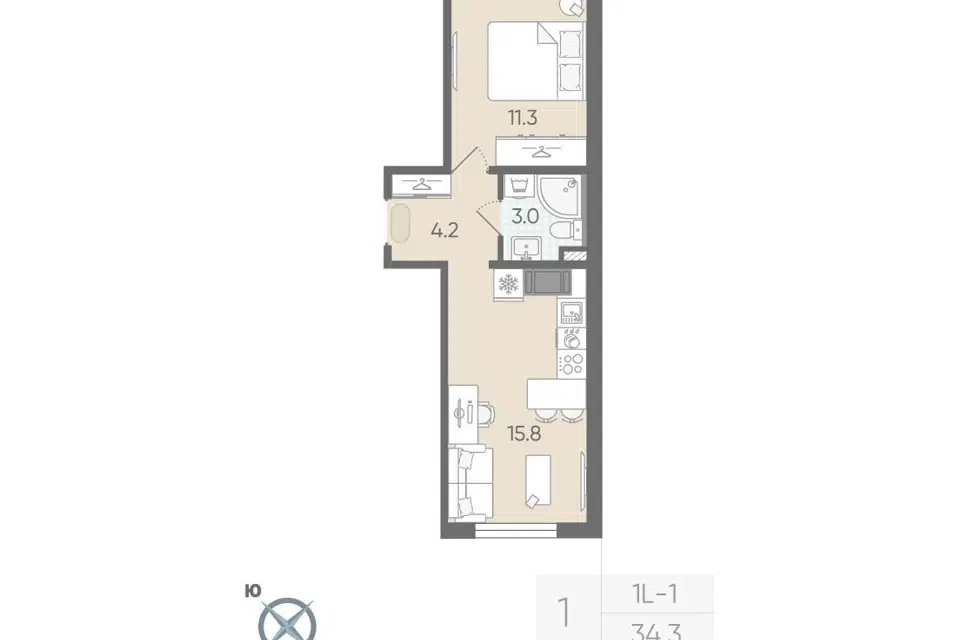 1-комн. кв., 34.3 м², 6/22 этаж