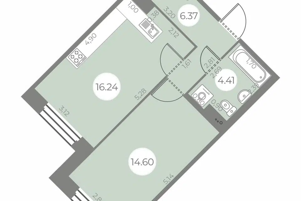 1-комн. кв., 41.62 м², 2/20 этаж