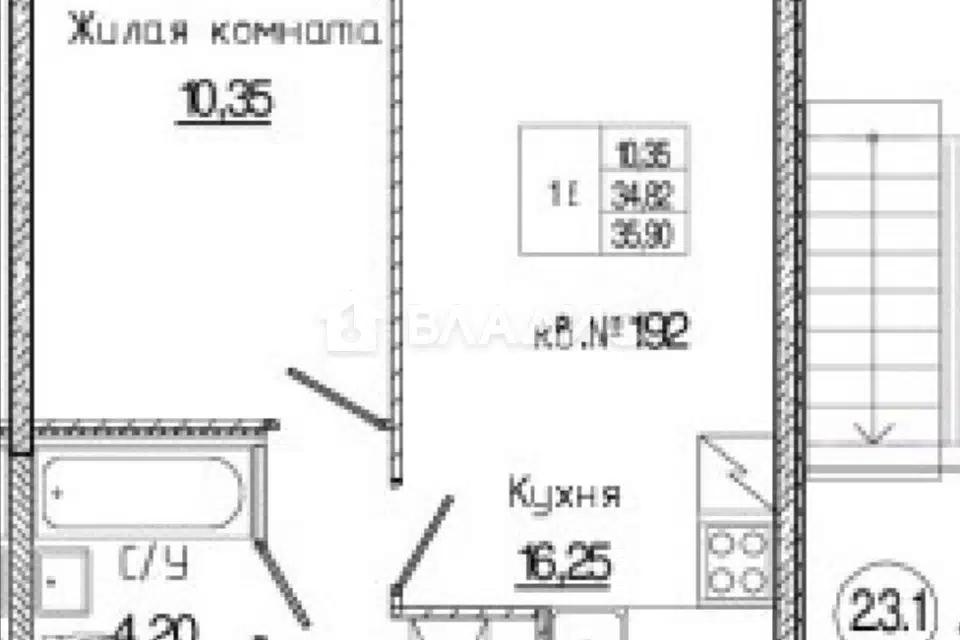 1-комн. кв., 35.9 м², 3/12 этаж