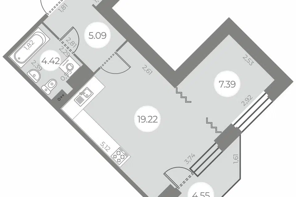 1-комн. кв., 74.8 м², 19/20 этаж