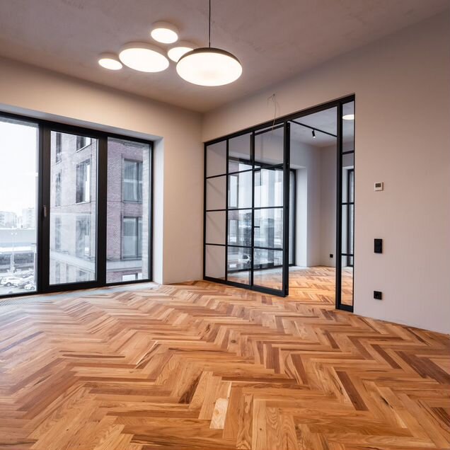 Высокие потолки (3,5м), много окон, два балкона дарят ощущение простора и наполняют пространство светом.