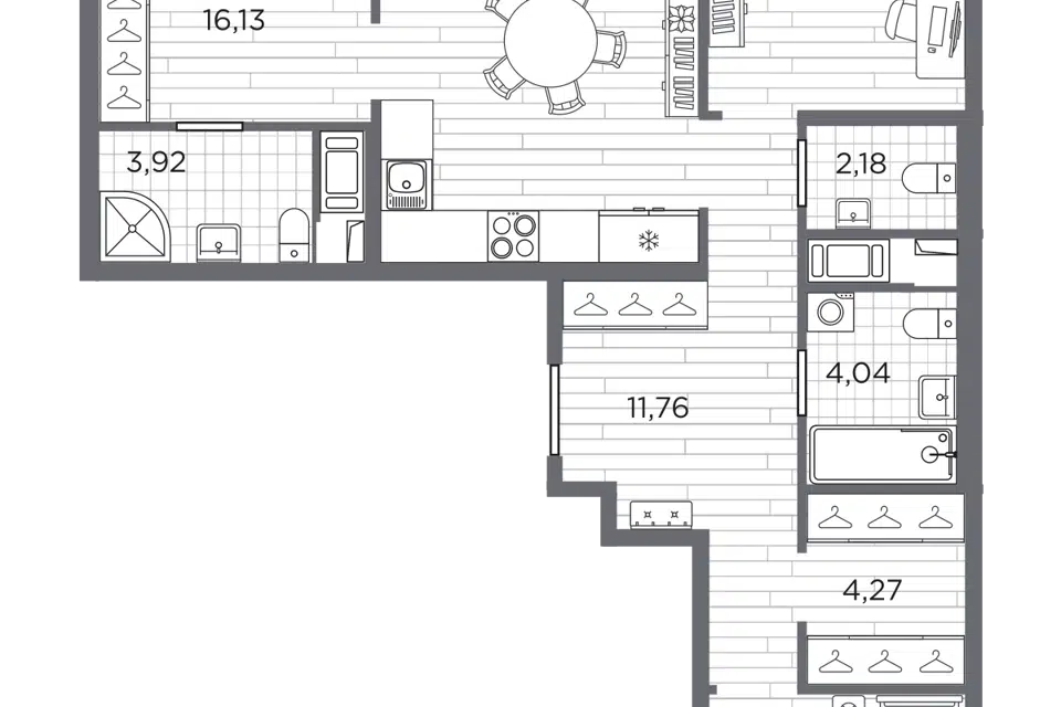 3-комн. кв., 90.76 м², 3/12 этаж