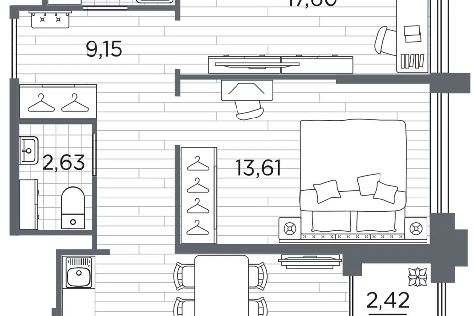 1-комн. кв., 42.54 м², 3/12 этаж