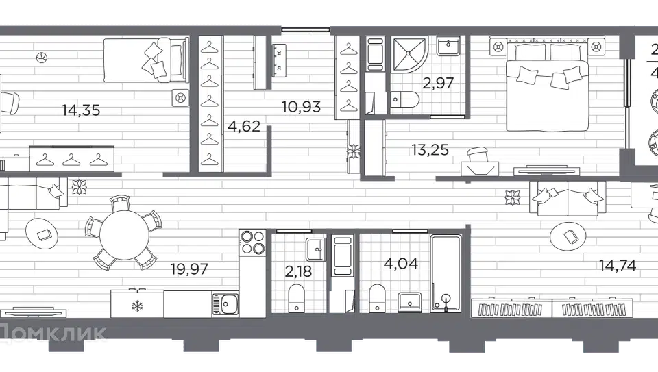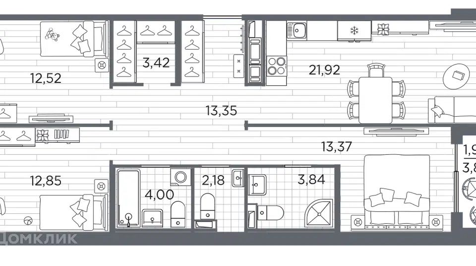 2-комн. кв., 68.75 м², 3/12 этаж