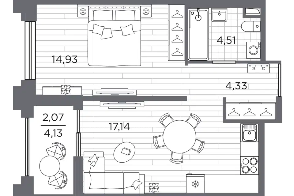 Студия, 26.42 м², 7/12 этаж
