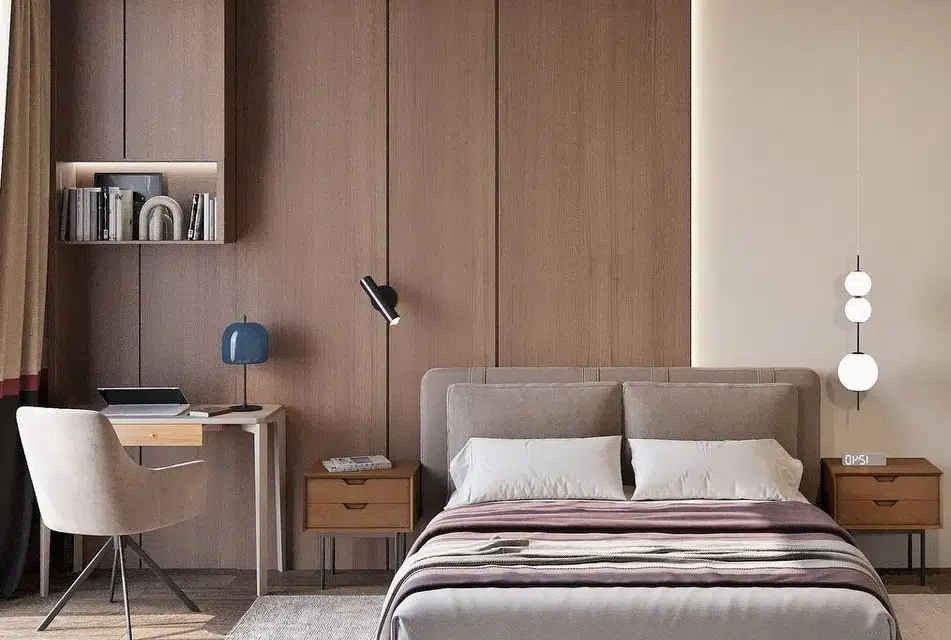 В малой спальне оборудована гардеробная с удобной системой хранения.