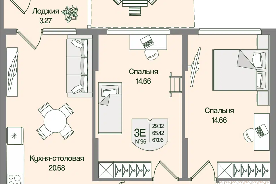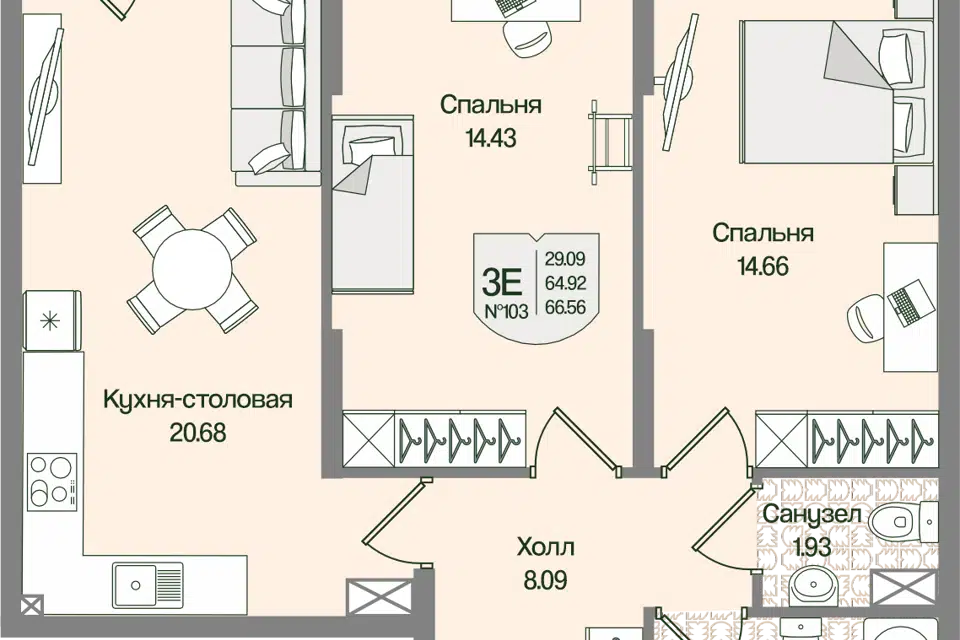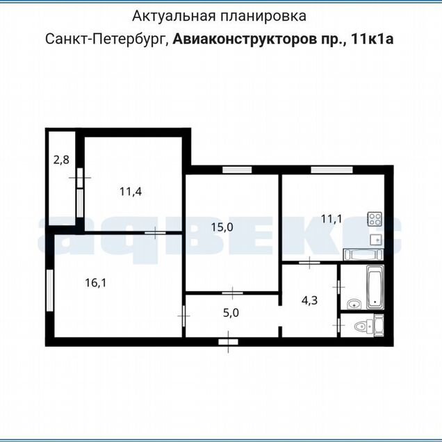 3-комн. кв., 66.6 м², 6/16 этаж
