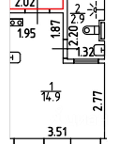Студия, 17.9 м², 2/6 этаж
