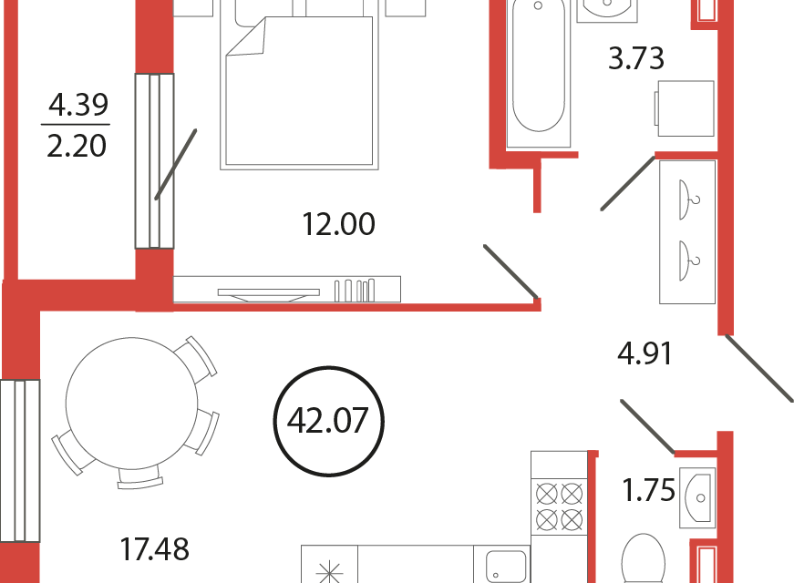 1-комн. кв., 42.07 м², 3/13 этаж