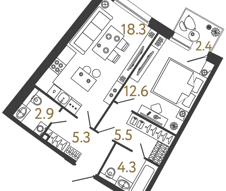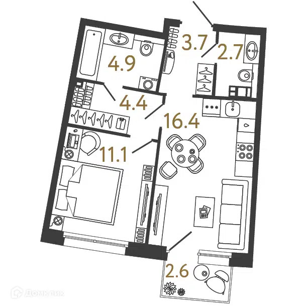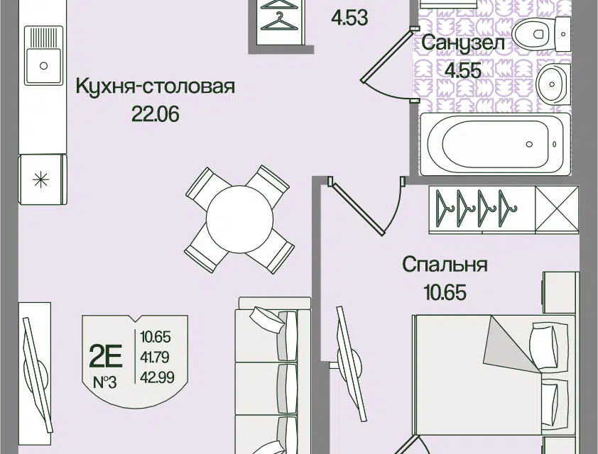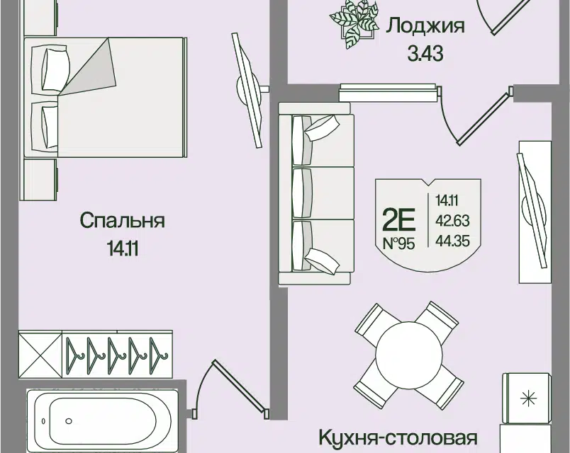 1-комн. кв., 42.99 м², 2/4 этаж