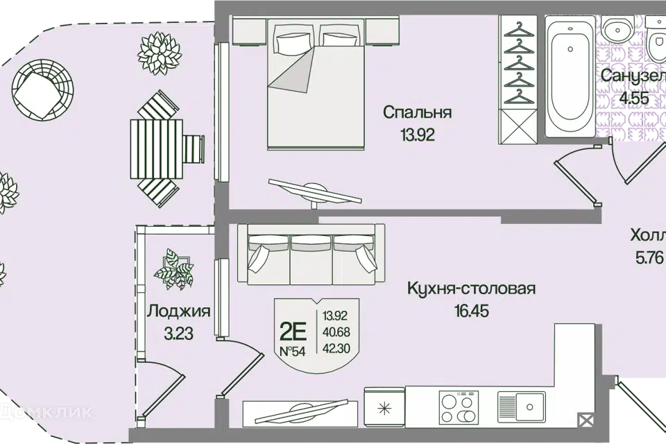 1-комн. кв., 42.29 м², 1/4 этаж
