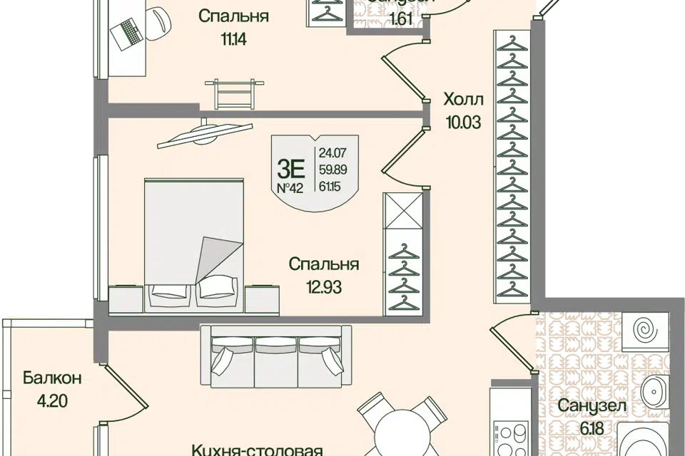 2-комн. кв., 61.15 м², 2/4 этаж