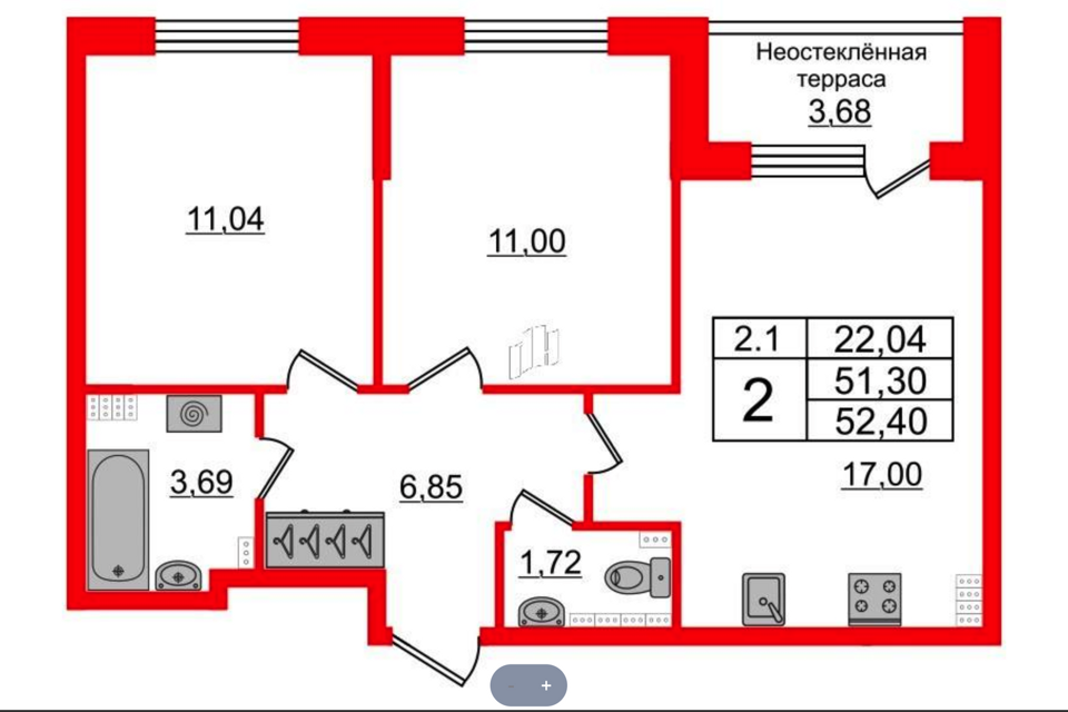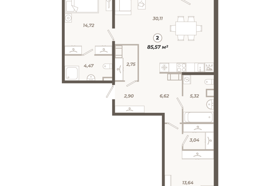 2-комн. кв., 85.58 м², 6/13 этаж