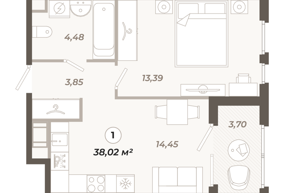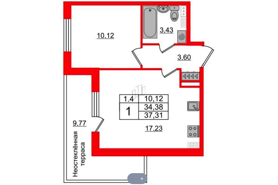 1-комн. кв., 38.02 м², 10/13 этаж