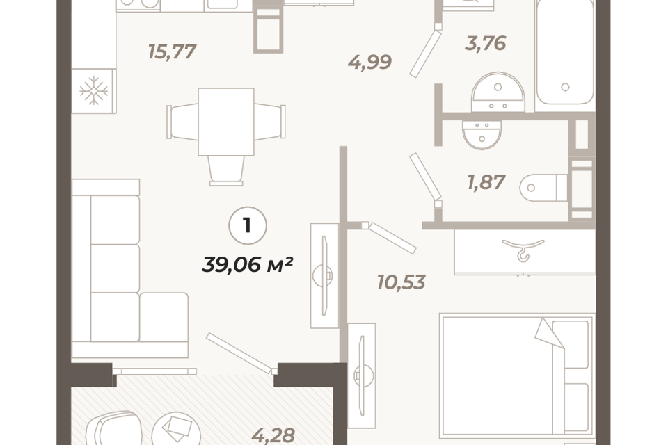 1-комн. кв., 39.06 м², 12/13 этаж