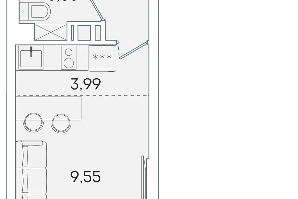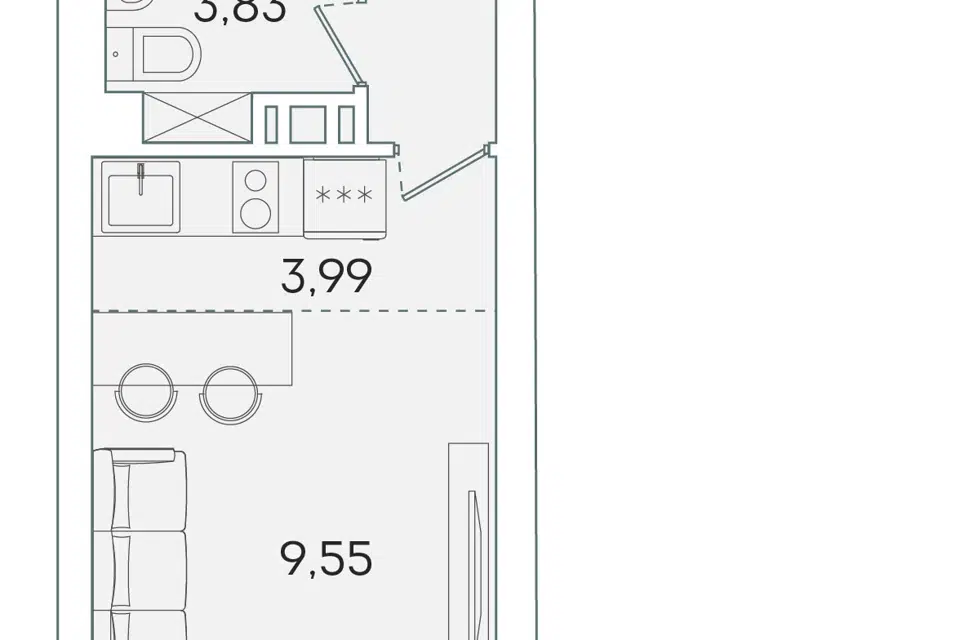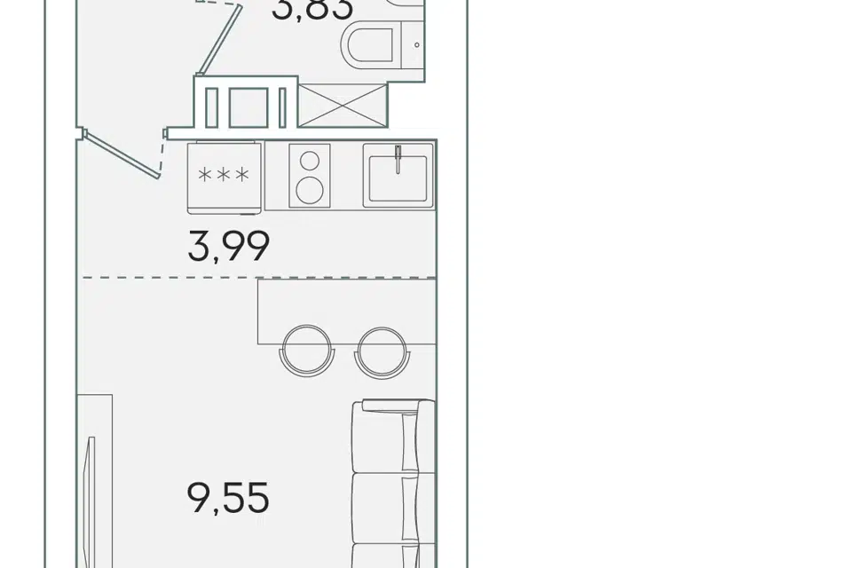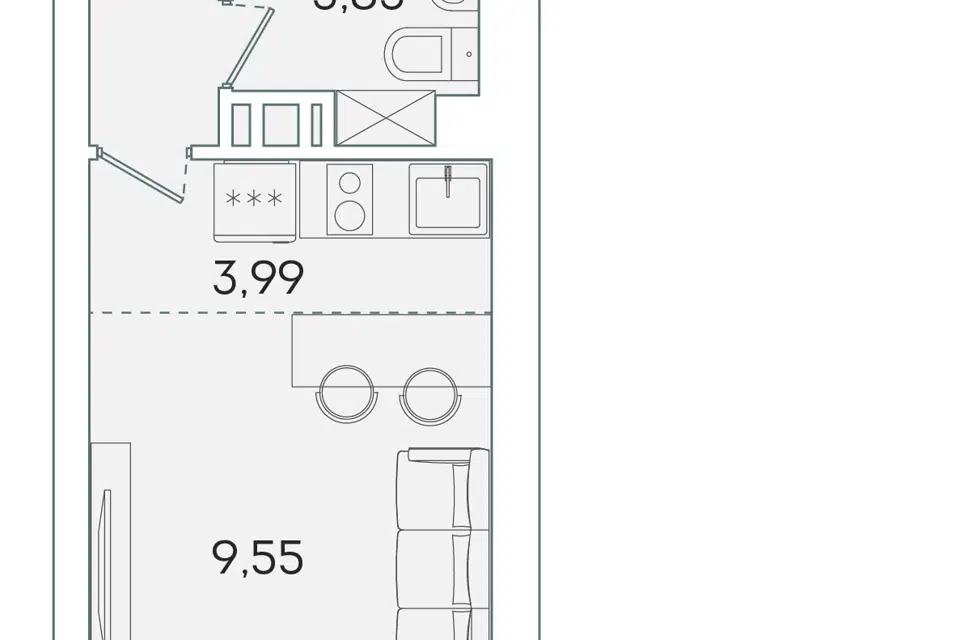 Студия, 23.5 м², 9/16 этаж