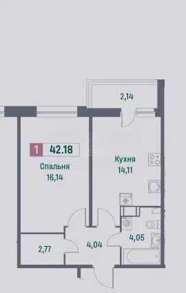 1-комн. кв., 41.11 м², 4/16 этаж
