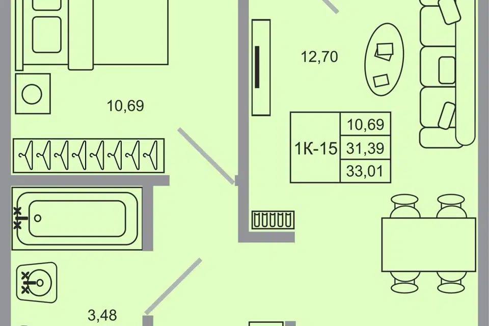 1-комн. кв., 33.01 м², 12/18 этаж