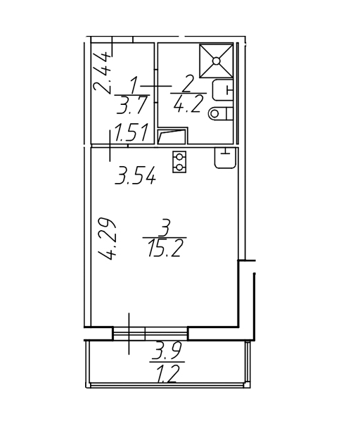 1-комн. кв., 43 м², 15/20 этаж