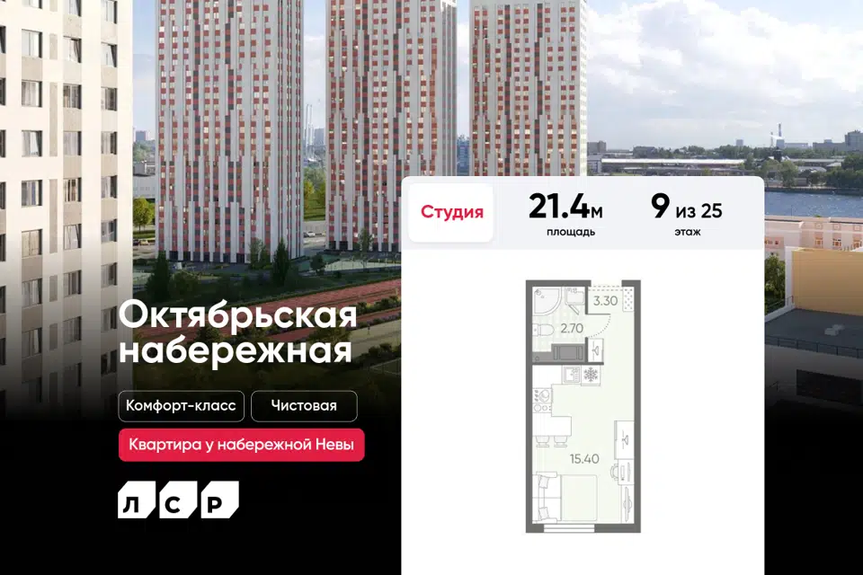 Студия, 21.4 м², 9/25 этаж