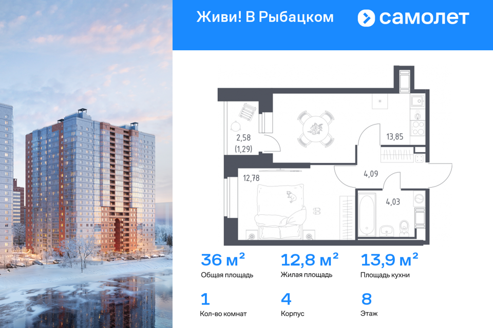 1-комн. кв., 36.04 м², 8/23 этаж