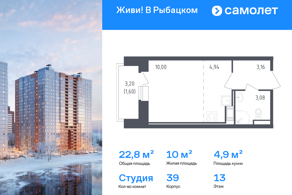 Студия, 22.78 м², 13/23 этаж