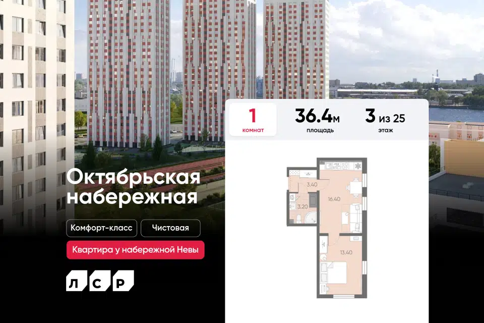 1-комн. кв., 36.4 м², 3/25 этаж
