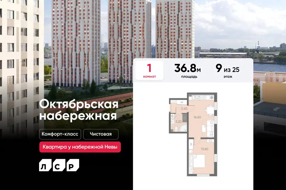 1-комн. кв., 36.8 м², 9/25 этаж