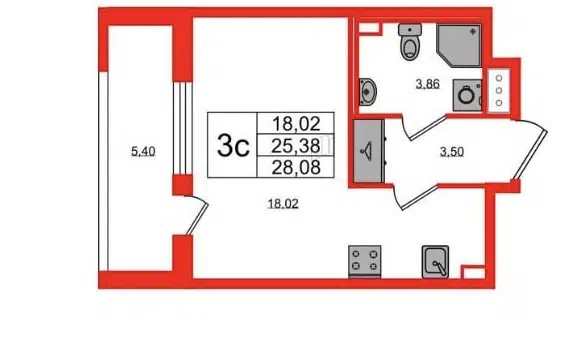 Студия, 20.5 м², 11/18 этаж